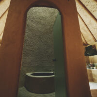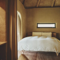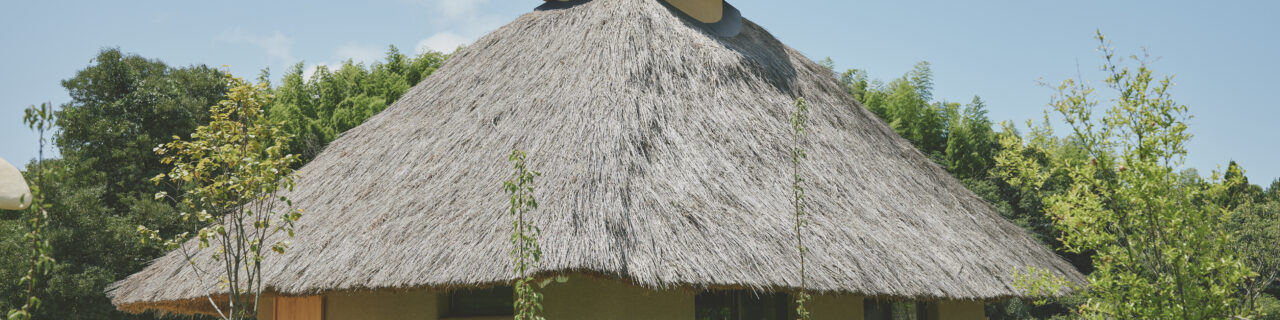 Tsuchikayan, crafted from earth, bamboo, and straw born from life on Awaji Island. A central earthen tower (bath) gently segments the space, while walls made of straw, bamboo, and earth softly envelop the whole. Enjoy this architecture with its continuous flow of space.