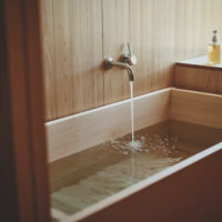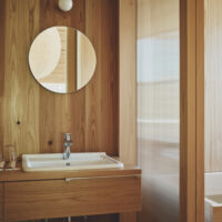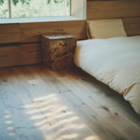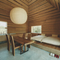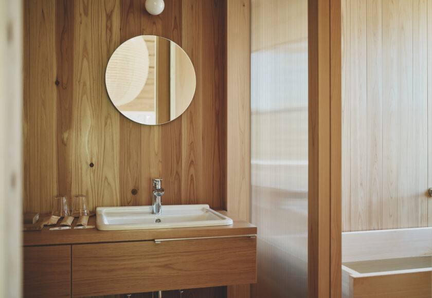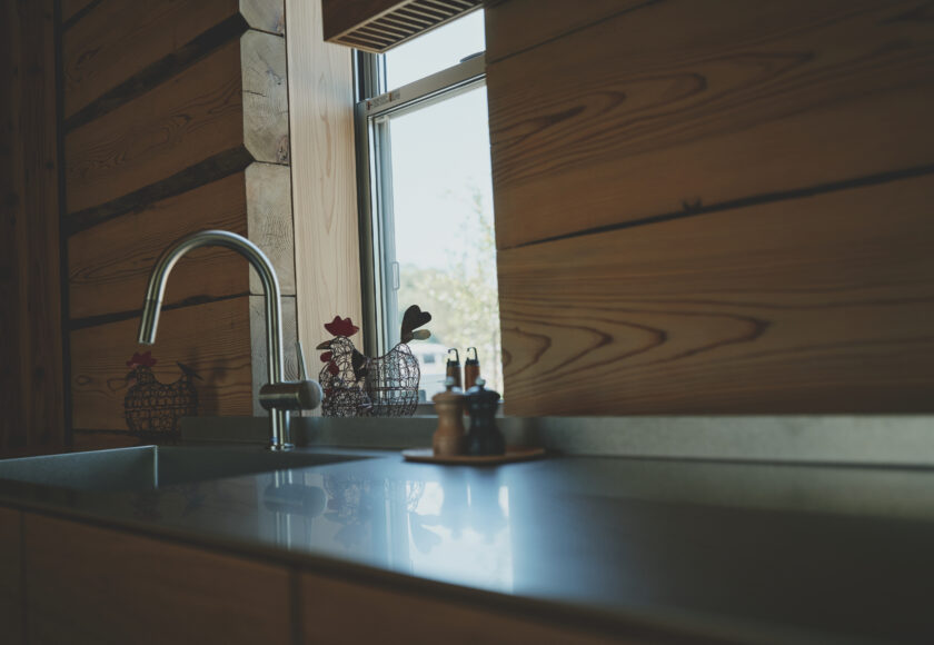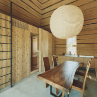 By efficiently utilizing large-diameter local cedar logs left in the mountains due to declining demand, it functions as a massive CO2 storage facility.