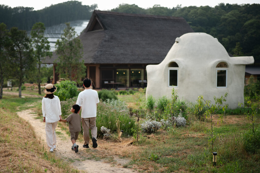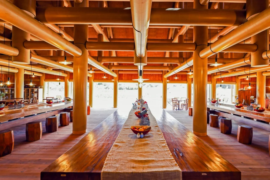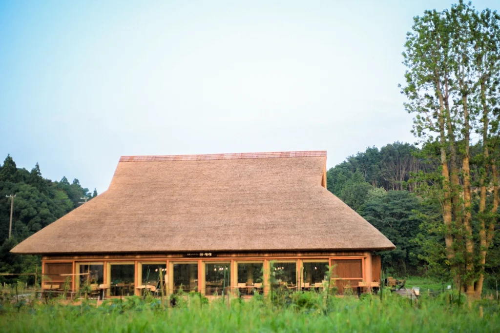 The “Haru San San” farmhouse was designed by Shigeru Ban, a world-renowned architect and Pritzker Prize laureate. Crafted from natural materials like wood, paper tubes, and a thatched roof, the architecture blends seamlessly with the surrounding landscape, as if born from the earth itself. In this place where wind flows through and light pours in, you can experience the harmony of architectural beauty and nature alongside your meal. Enjoy refined cuisine in this tranquil space.
