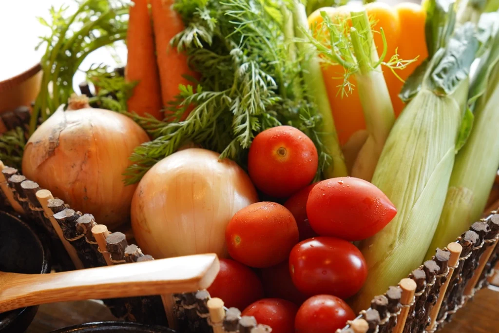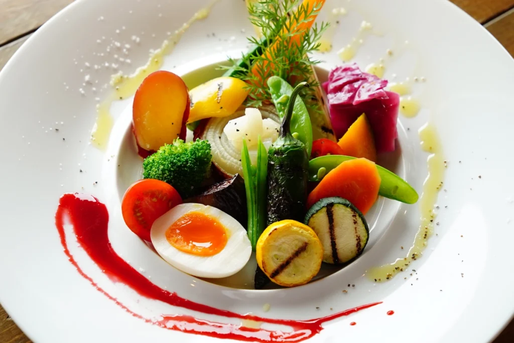 The cuisine at the Farm-to-Table Restaurant “Haru San San” features vegetables as the stars of the dish—grown with dedication and care on the vast fields surrounded by Awaji Island’s rich nature and by local producers. Freshly harvested from fields glistening with morning dew, these vegetables will captivate your senses with their vibrant aroma and deep, natural flavor. Each dish, crafted with the chef’s delicate skill and creativity, maximizes the inherent umami (savoriness) of the vegetables, adorning your table with a rich tapestry of colors.